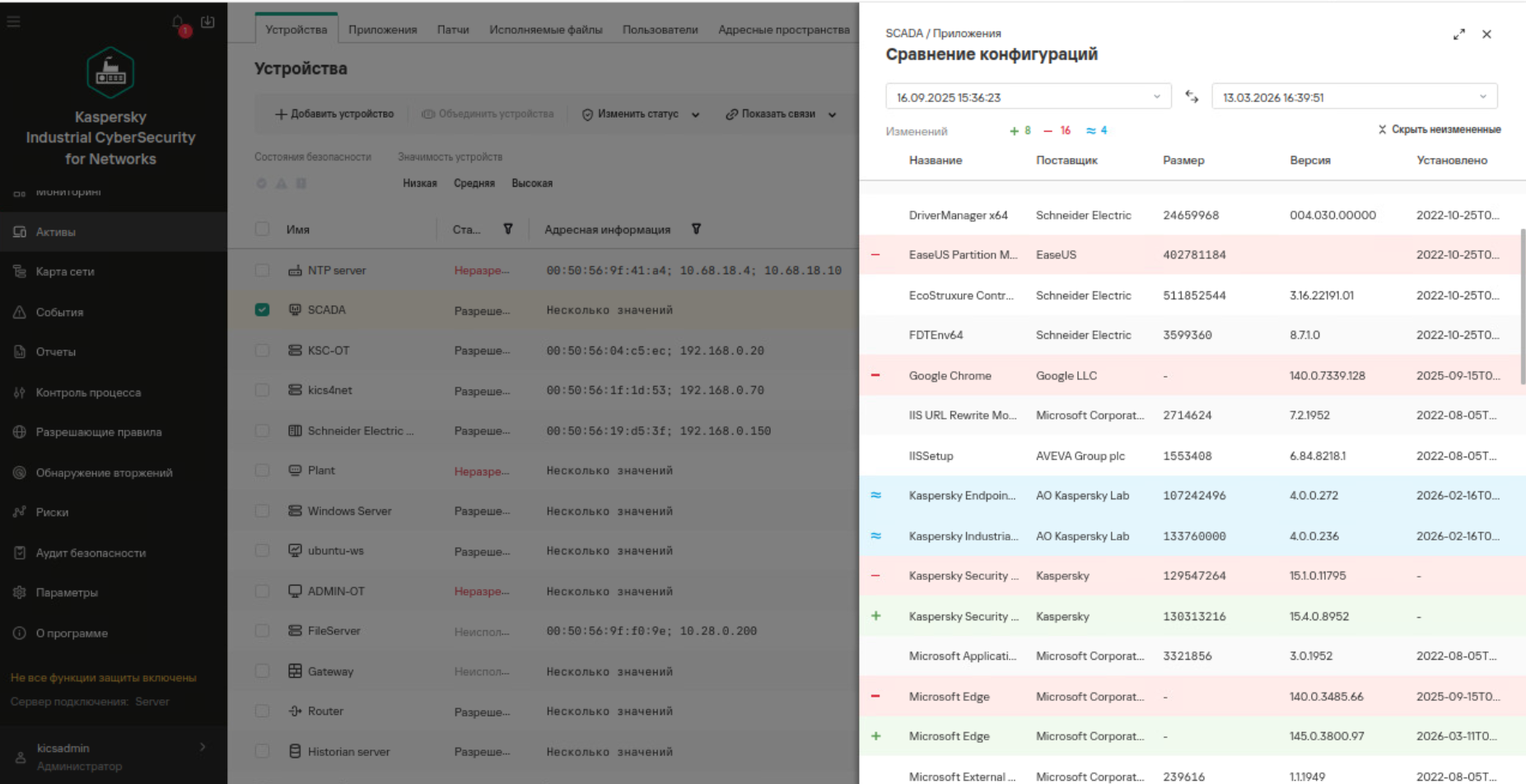 С помощью KICS for Networks проводится аудит безопасности контролируемых устройств. Одна из важнейших задач безопасности - это контроль конфигураций. Контроль конфигураций - ключевая функция аудита безопасности в KICS for Networks. С помощью специальных заданий система выполняет комплексный аудит контролируемых устройств, который включает: