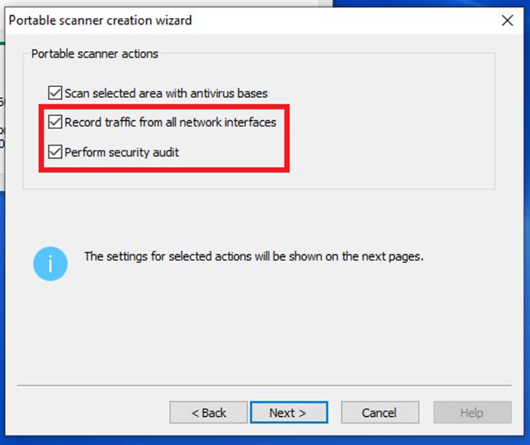 При необходимости можно выбрать дополнительные опции: сохранение трафика сетевых интерфейсов и выполнение аудита безопасности проверяемых устройств.