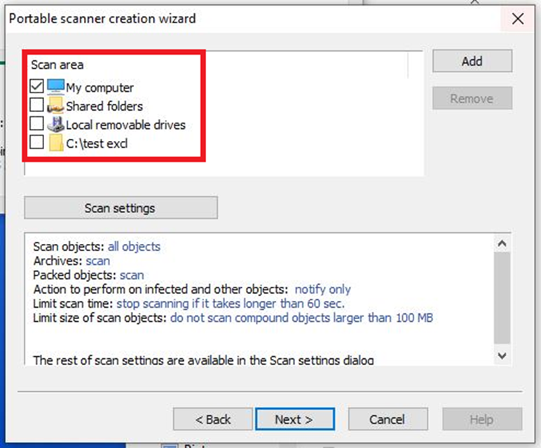 Для выбора исключений их необходимо добавить в список явным образом. Альтернативным, но не менее эффективным способом может быть исключение области My Computer и явный выбор накопителей, которые подлежат сканированию.