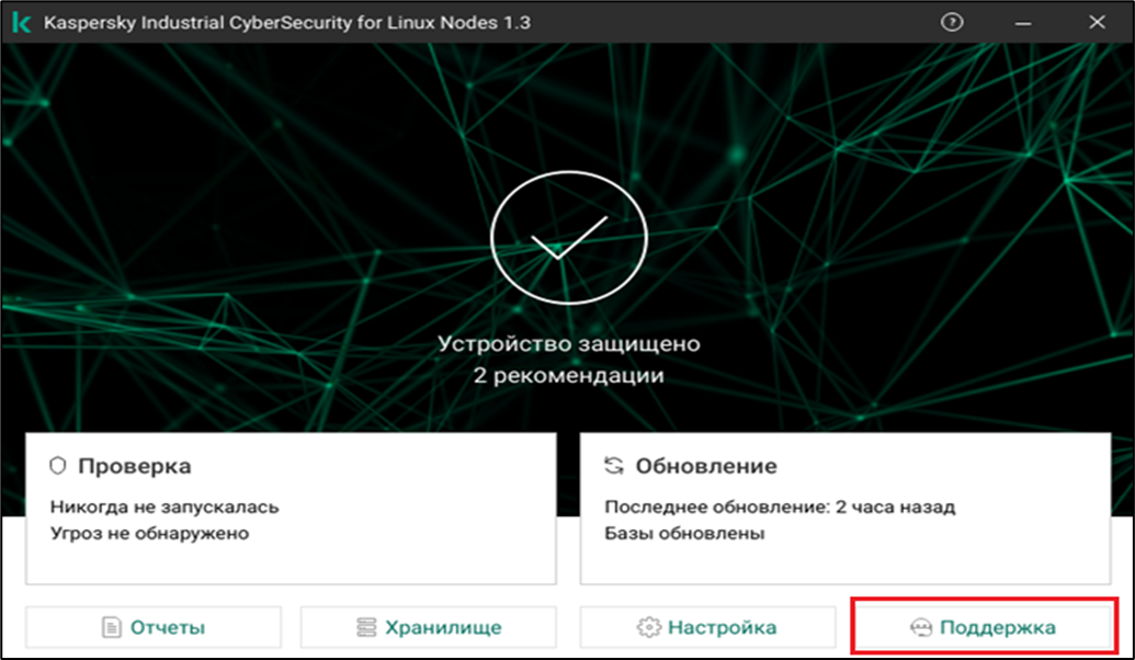 - Нажмите кнопку "Поддержка".