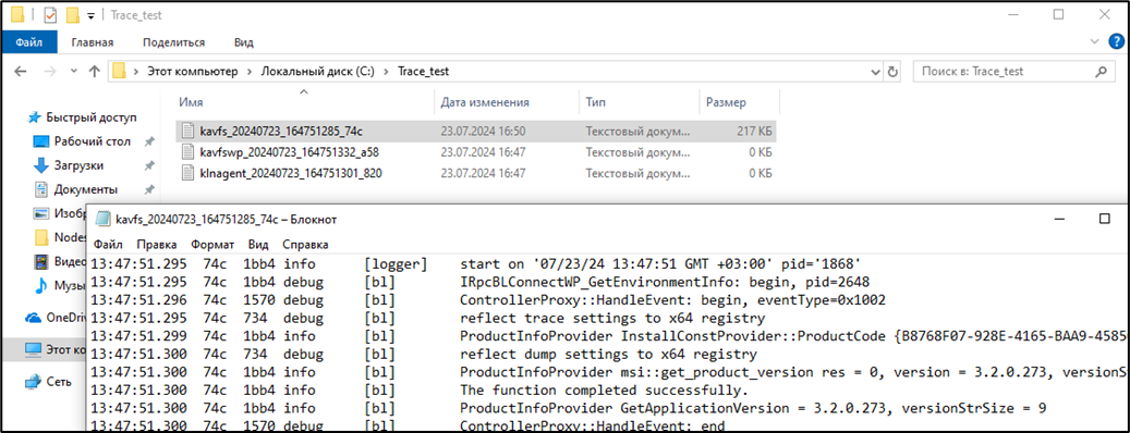 - Пример записанного файла трассировки